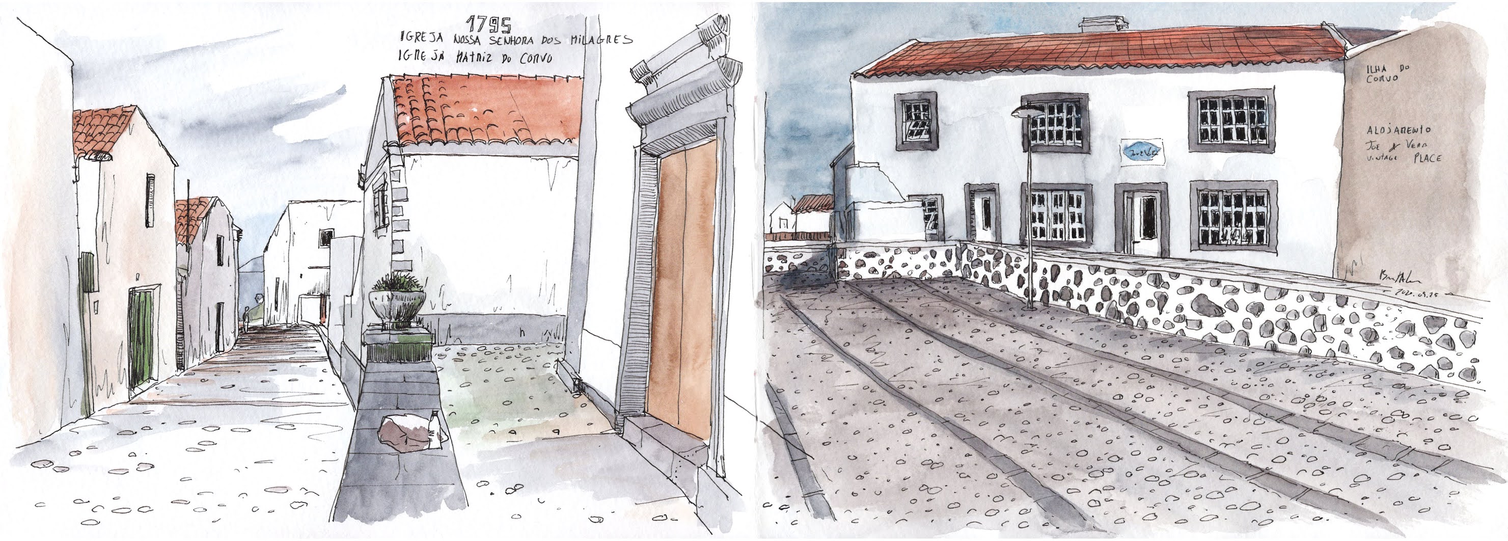 A Ilha do Corvo esconde uma das paisagens mais surreais que já desenhei, no topo do Monte Gordo surge o Caldeirão.